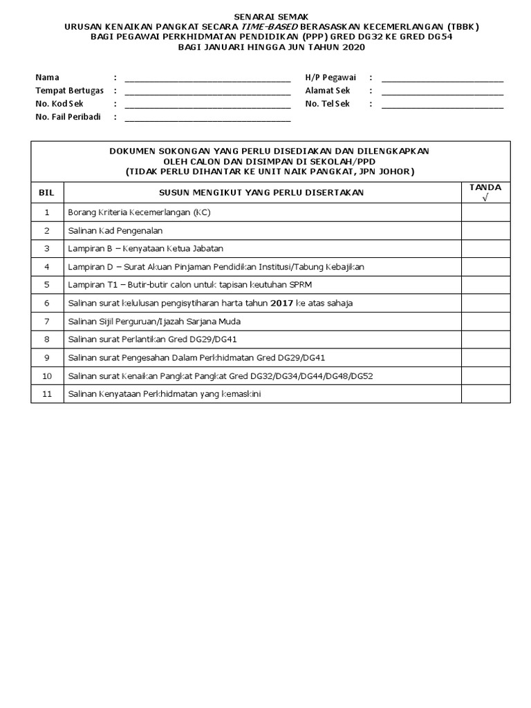 Semua permohonan hendaklah menggunakan borang permohonan mengikut kategori seperti berikut: Cara mengisi borang kenaikan pangkat dg44 ke dg48. Sulit kategori 1b borang penilaian tahap kecemerlangan guru tahun. Permohonan kenaikan pangkat ini disokong / tidak disokong* (a) pegawai perkhidmatan pendidikan (ppp) gred dg32 hingga gred dg54